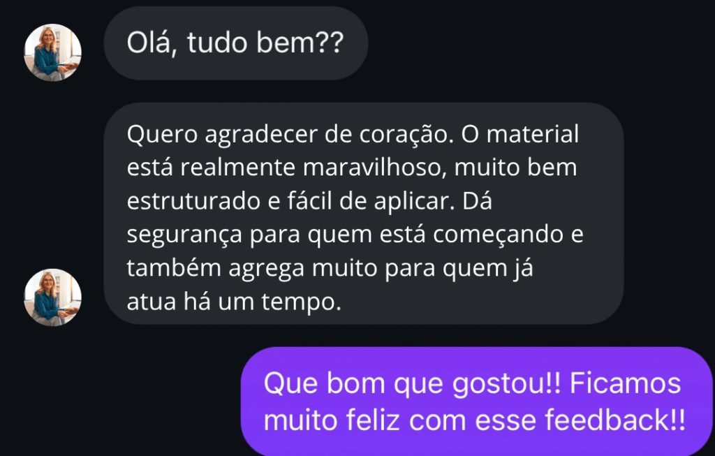 Um material prático com frases e perguntas estruturadas para facilitar a condução da sessão, desde a introdução psicoeducativa até o encerramento. Deixe sua comunicação mais clara, objetiva e terapêutica, com roteiros prontos para usar.